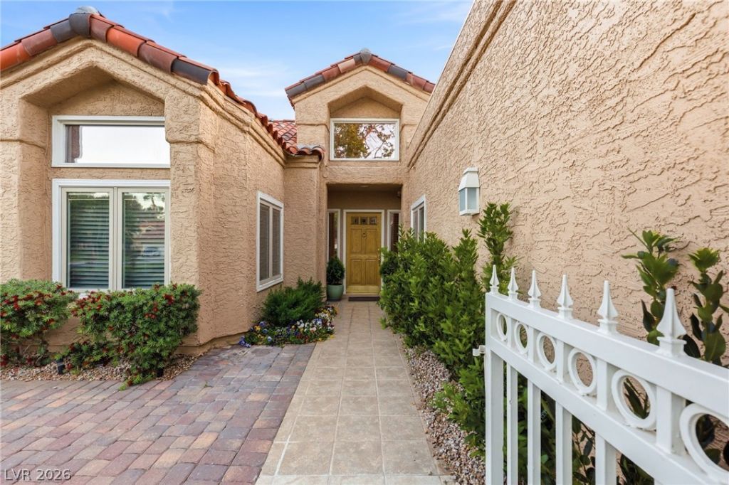 Exceptional townhome in the prestigious guard-gated Spanish Trail golf community, perfectly positioned on an elevated end-unit lot with sweeping golf course, water, and mountain views. This private residence offers soaring vaulted ceilings, abundant natural light, and tasteful updates throughout, including stainless steel appliances, elegant flooring, and marble finishes. The home features a flexible layout with the potential to be easily converted into a 3-bedroom floor plan, adding exceptional versatility for guests or additional living space. Enjoy added peace of mind with brand-new AC, Rolladen security shutters, and newly refreshed landscaping that enhances both curb appeal and privacy. The detailed courtyard and finished garage with custom storage complete the home's thoughtful design. A rare opportunity to enjoy scenic views, privacy, and resort-style living in one of Las Vegas' most sought-after golf communities.