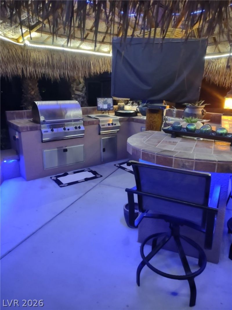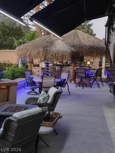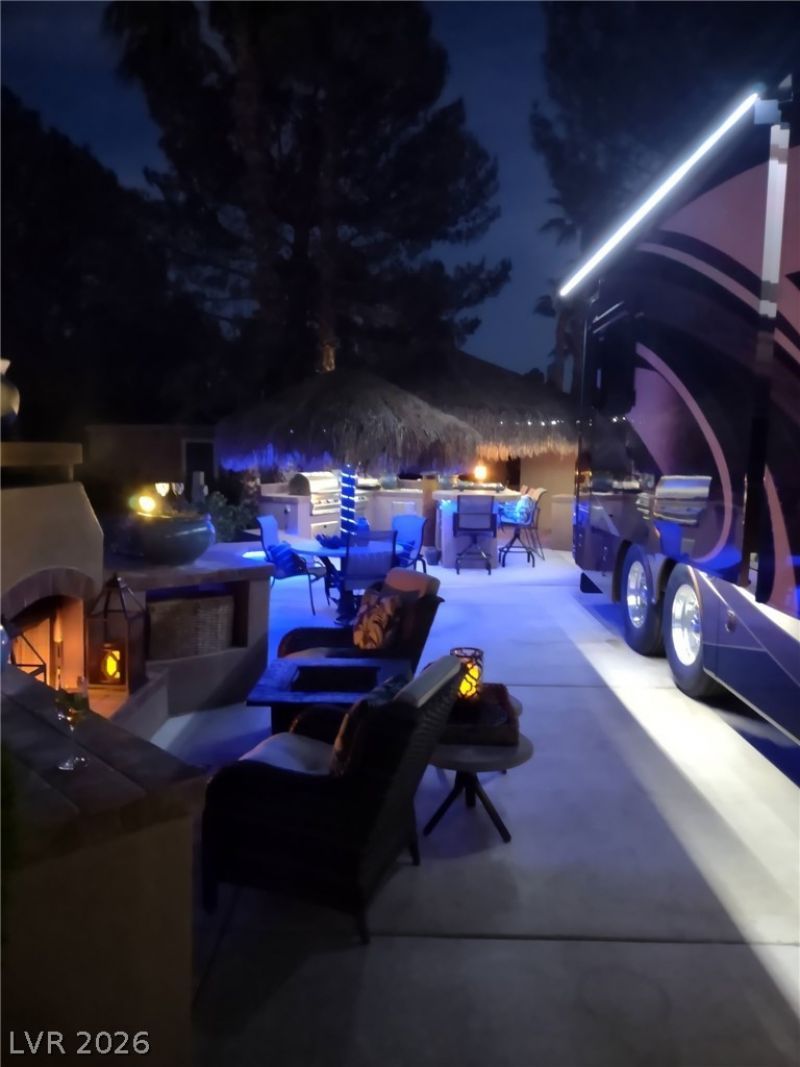 Lot 152 at the guard-gated Las Vegas Motorcoach Resort offers an exceptional blend of comfort, style, resort living and is very close to the main clubhouse and premier amenities. This beautifully appointed lot is designed for outdoor enjoyment, featuring two palapas, a welcoming seating area with fireplace, and a fully equipped outdoor kitchen perfect for entertaining. Enjoy gathering around the bar seating area, with ample storage cabinets to keep everything organized and convenient. Whether you're hosting friends or relaxing after a day of resort activities, Lot 152 provides the ideal setting to enjoy the best of luxury motorcoach living in Las Vegas.